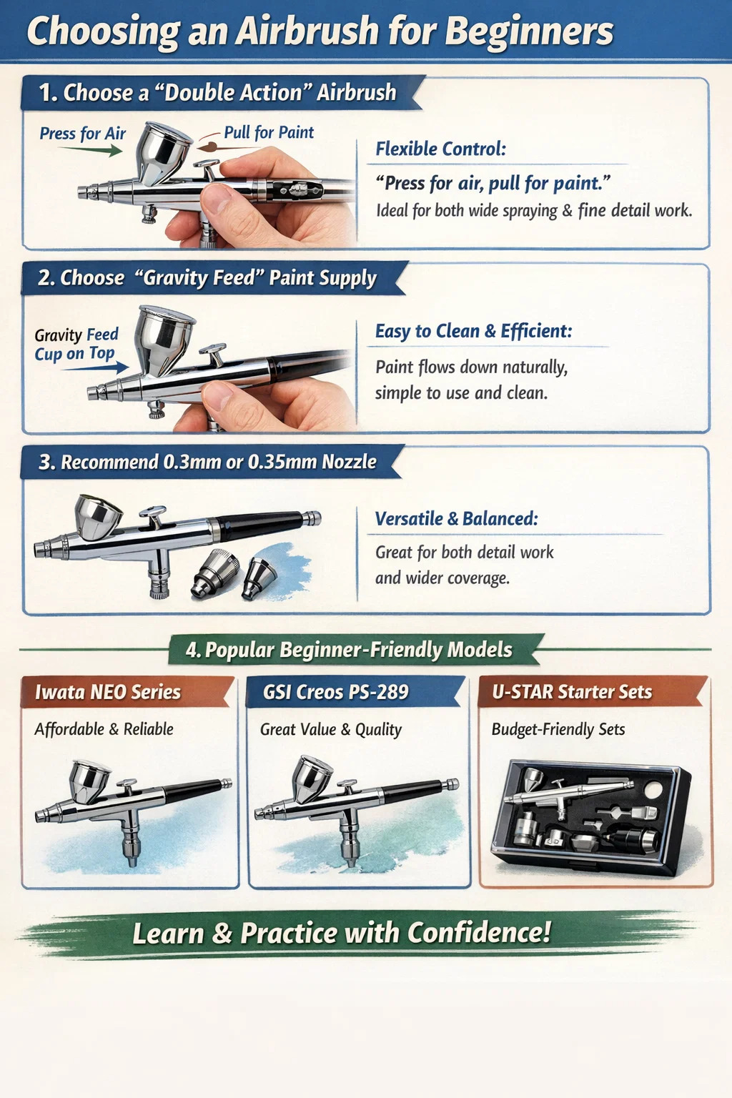 Iwata NEO sorozat: Ez egy kifejezetten kezdőknek tervezett sorozat, megfizethető áron és a márka első osztályú kidolgozását örökli. Porlasztó hatása nagyon stabil, és sok ember számára ez az első festékszóró. GSI Creos PS-289: Ez a festékszóró kiváló ár-érték arányt kínál, légáramlás-szabályozással, tartós alkatrészekkel, valamint egyszerű szétszerelési és tisztítási folyamattal rendelkezik. Nagyra értékelik a modellrajongók körében.